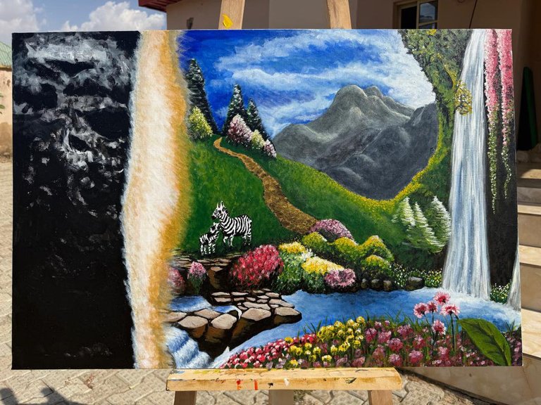 Here is my latest artwork inspired from the book of Genesis, chapter one and verse one downwards. This bible passage tells us about the creation and beautification of the earth, It also shows us the importance of light in every confused state.