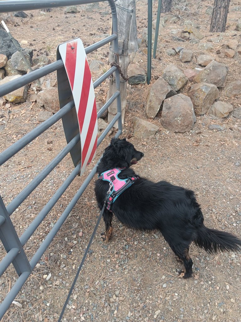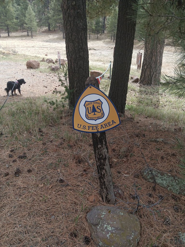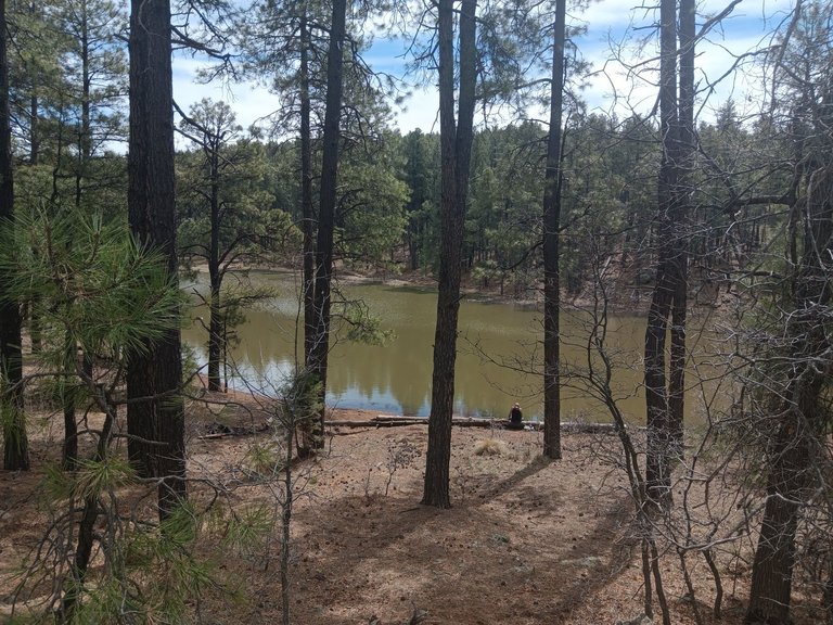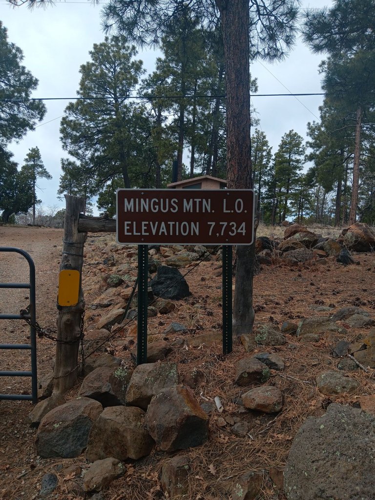 There were several cars and ATVs in the parking area but our route took us up a gated Forest Service road to the campground area and the small Mingus Lake along the way. Not that much of a lake (more like a pond) but it was a tranquil area surrounded by pine trees and plenty of noisy jays. The higher altitude and cloudy sky made the temperature much more moderate but Lulu loves to dip her feet and belly in the water and a nice drink was all she needed before heading up the hill to the Forest Service lookout area.