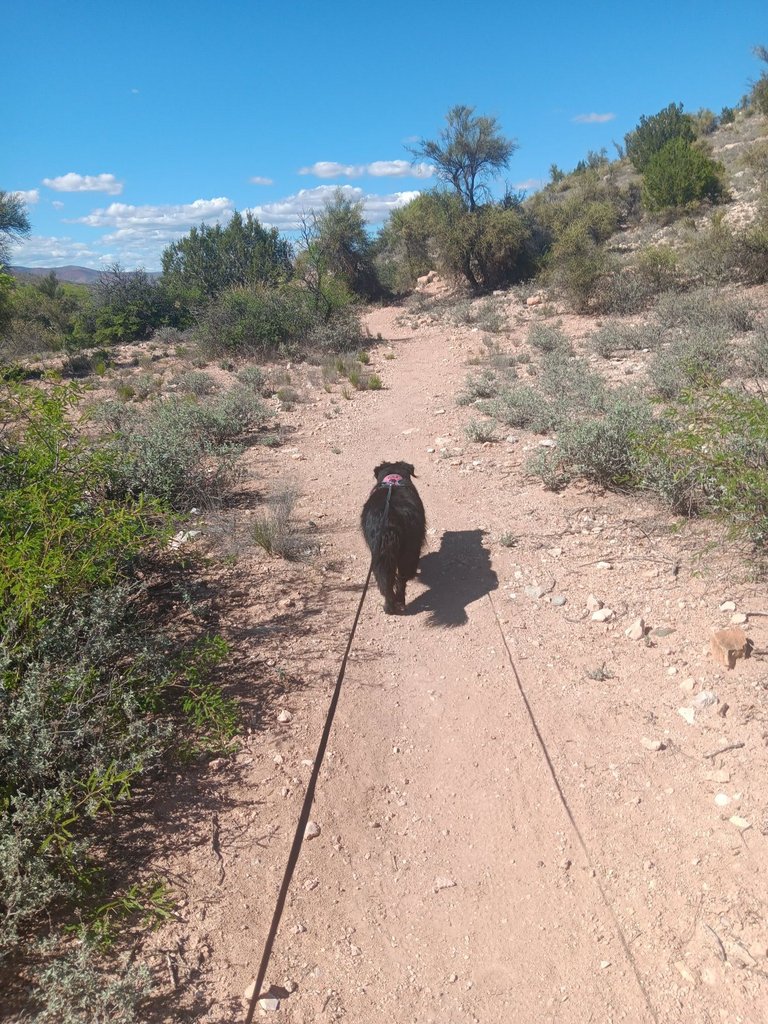 Lulu was ready for a better hike in the afternoon and we went up the forest service road to trot along the (now sunny and warm) trails along the base of the mountains.