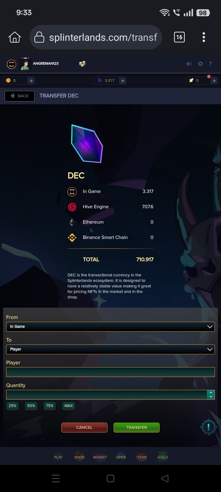 Along with the rewards, I noticed that I had some DEC (Dark Energy Crystals) deposited into my account. DEC is Splinterlandsā own currency, which can be used to purchase various in-game items.
