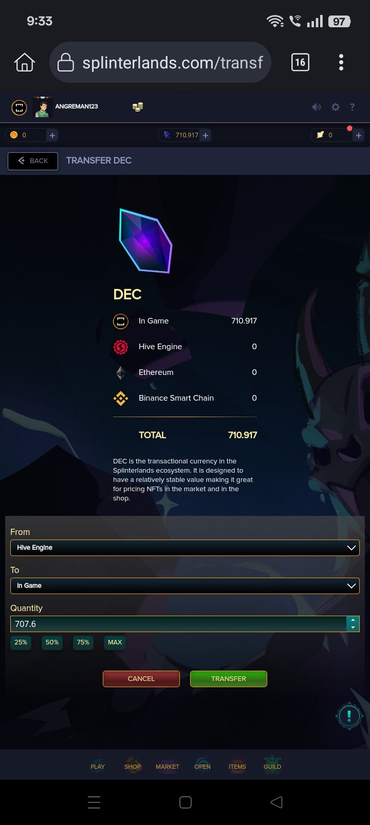 I decided to use a portion of my accumulated DEC to invest in the future. For this, I transferred some DEC from Hive Engine to my in-game balance.
