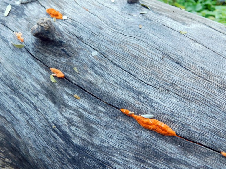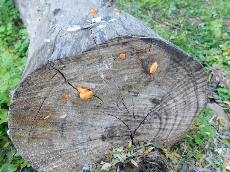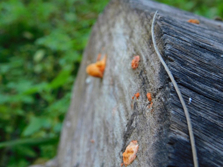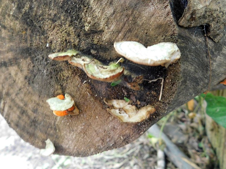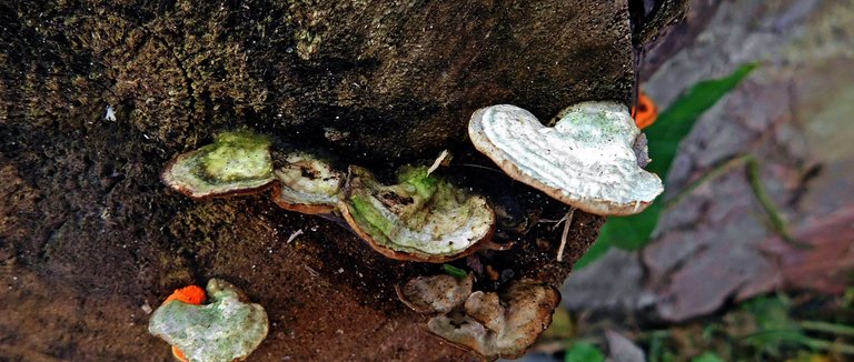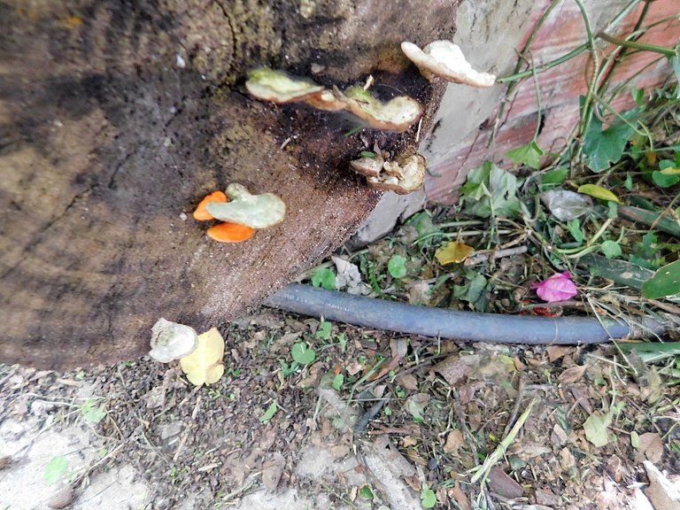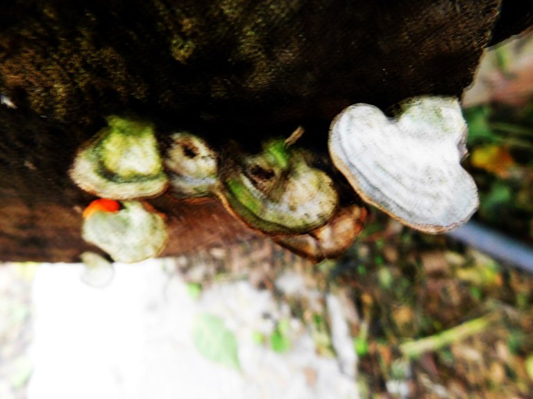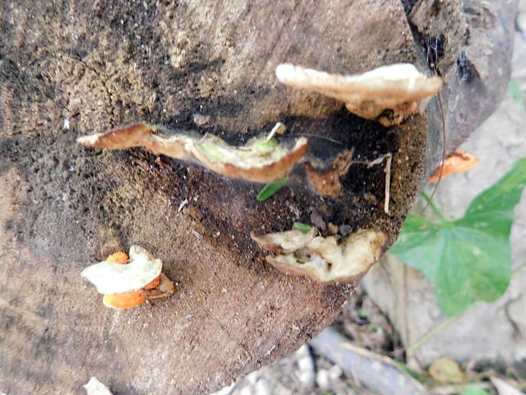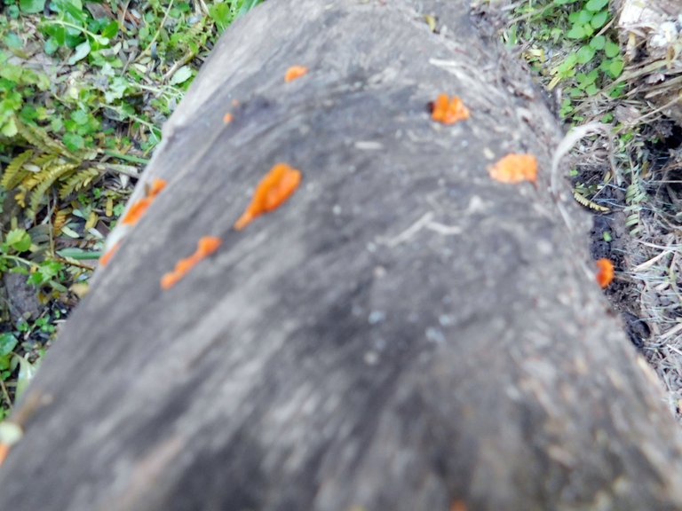 Hace algunas semanas he notado que esta ¨especie¨ : crece junto a otros hongos en el mismo tronco, esto es algo que antes no lo veíamos; no sé cuál sea la razón de esto, pero debo decir que me encanta verlos; son de esos tipos muy llamativos, y por más pequeños que ellos sean los puedes encontrar
