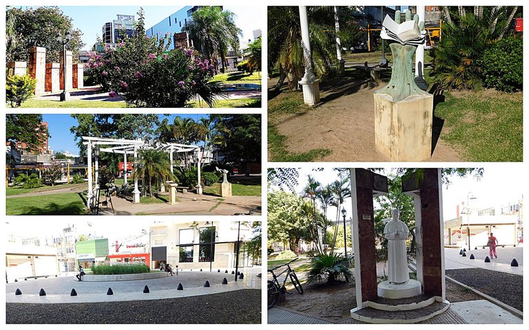 The natural exuberance in this space is truly admirable; it feels wonderful to walk along these shady paths. In another section of the plaza, there is also a space dedicated to