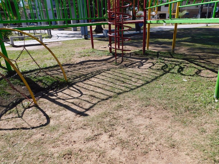 Since the results have been quite frustrating, my wife and I decided to take advantage of being in this part of town to do our "shadow hunt" and return home more relaxed. As you know, this plaza is ideal for taking "shadow" photos; there are many playground structures there that project beautiful "patterns."
