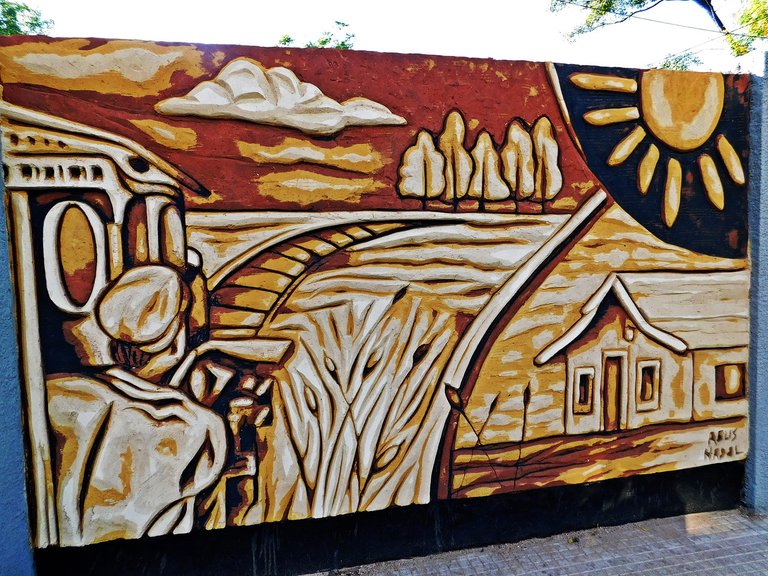 "work":that I chose to show you this week belongs to one that must be a little over 80 meters long in total, and each mural represents a part of the route of the "old" train that functioned as transportation connecting the city with the different towns in the interior; the