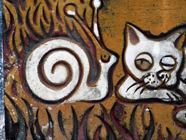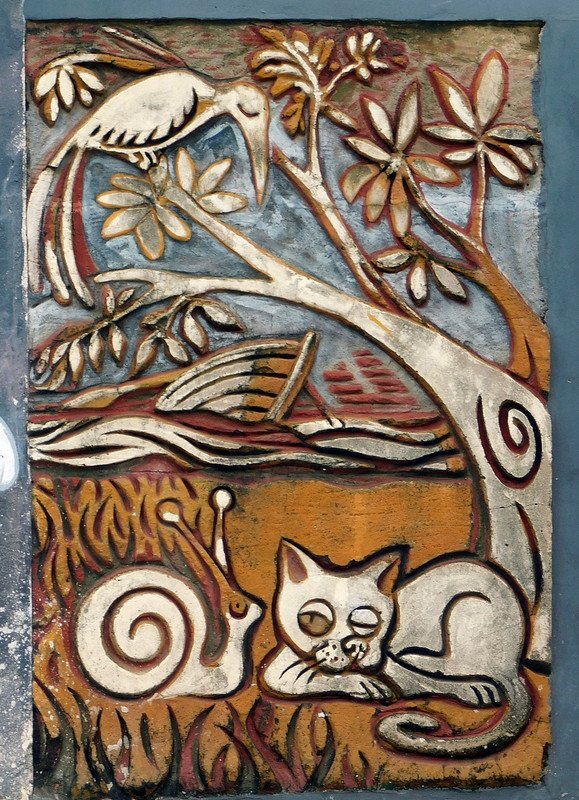 Que maravilloso mural, ese gatito con el pájaro es precioso y lo que más me gusta es el relieve. Precioso!!! Muchas gracias Luis y que tengas un hermoso día!!🤗
