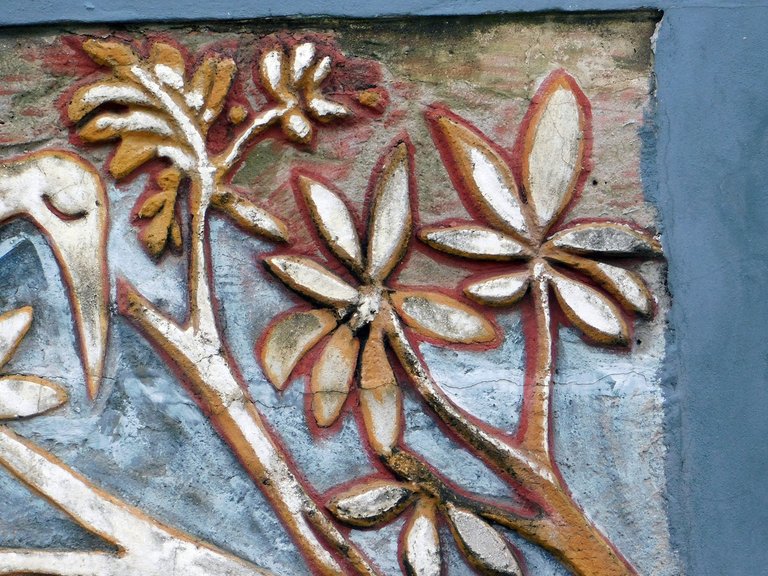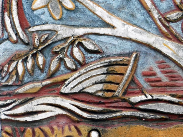 Los murales hechos en cemento pintado y relieve es una técnica que se usa mucho en mi ciudad