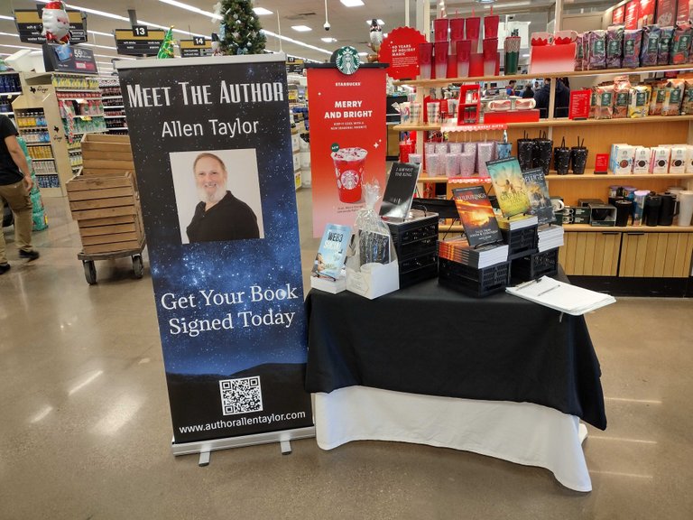 I drove to Kroger and set up a book table. I sold books for 8 hours then met a friend and his wife for dinner. After dinner, we drove to Jeff's house and hung out for a while. Then we drove back to our campsite.