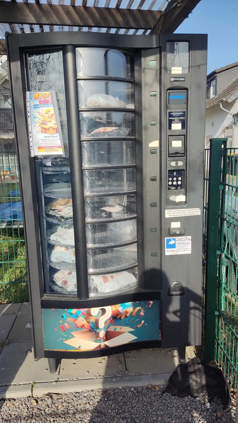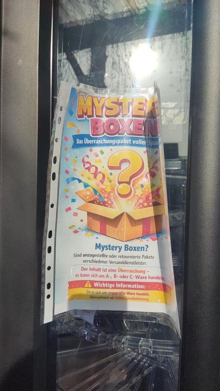This was a mystery box where you could buy undelivered packages for 10€ but you don't know what you get. Mystery pack tho. Unfortunately we had no money with us and decided to come back another time. The cache was hidden nearby. This was a pretty nice idea and got a favorite point from us.