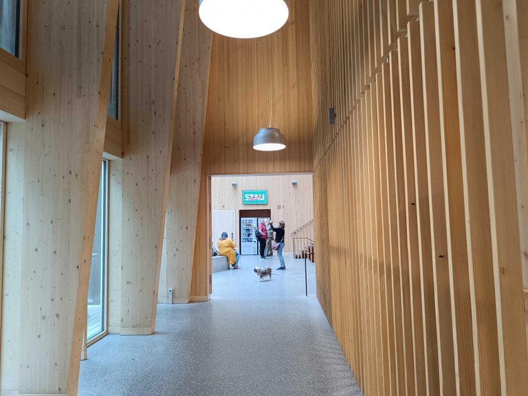 Which is one of the nicest rest areas I've seen. A building mad by wood and glass with an extremely comfy interior design.
