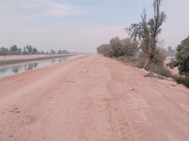 I walked almost fifteen to twenty minutes on the track. The water level in thal canal was very low because in January the irrigation department stop water in canal. I took some pictures there and returned because I had to take tea from a renowned hotel. A stray dog was wandering on the track.