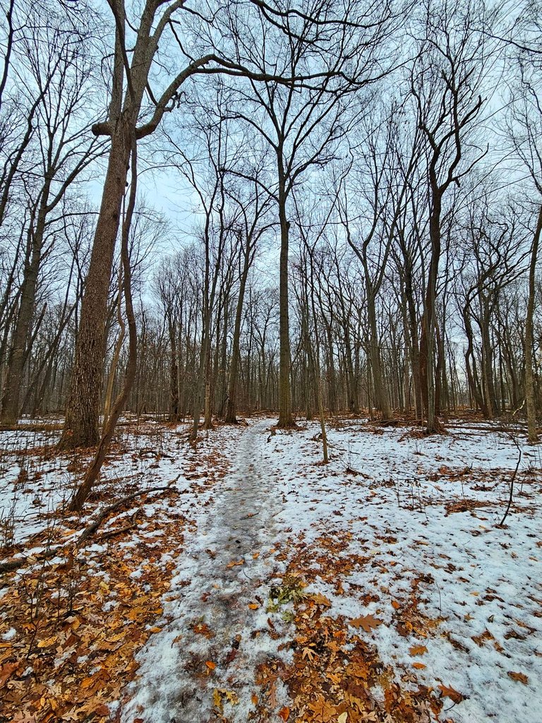 Further on the trails, it's just covered entirely with ice, very tricky to walk on.