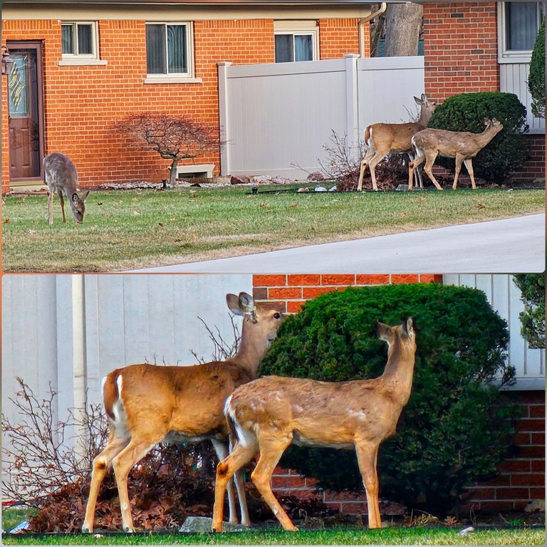 Just a few houses from home, we also met more deer. They were having dinner in a front yard. I know people don't like when deer eat their plants and shrubs in the yard, but I think it's cute.