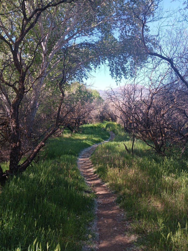 Not very speedy when I hit the trail uphill section but it was nice to have enough foliage on the trees to filter the bright sun and there was a little breeze which also helped moderate the heat.
