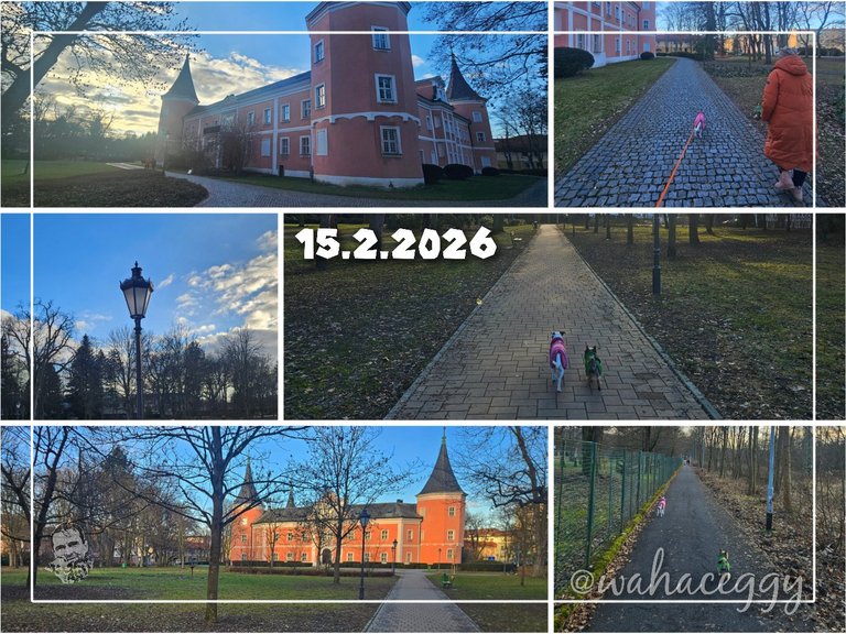 Nejsem úplně na 100 % mobilní, poněvadž jsem si z běhání a následně ze sobotních agility závodů poranil lýtko, a tak jsme v neděli se psy zamířili jen na krátkou obchůzku městem.