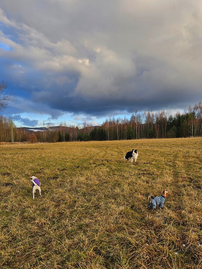 Odpoledne jsme šli s našimi psy a se synovým Dantem za město na pole.