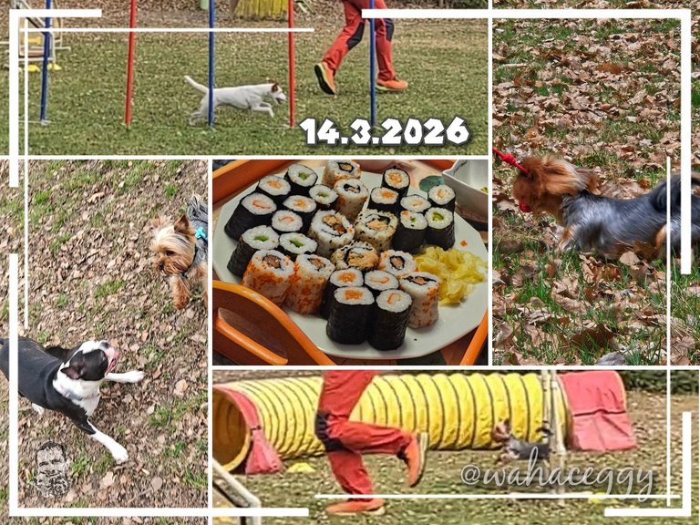 Dneska odpoledne jsme zajeli k nám na cvičák na agility. Cesmína i Oggy si pěkně zatrénovali.🐾