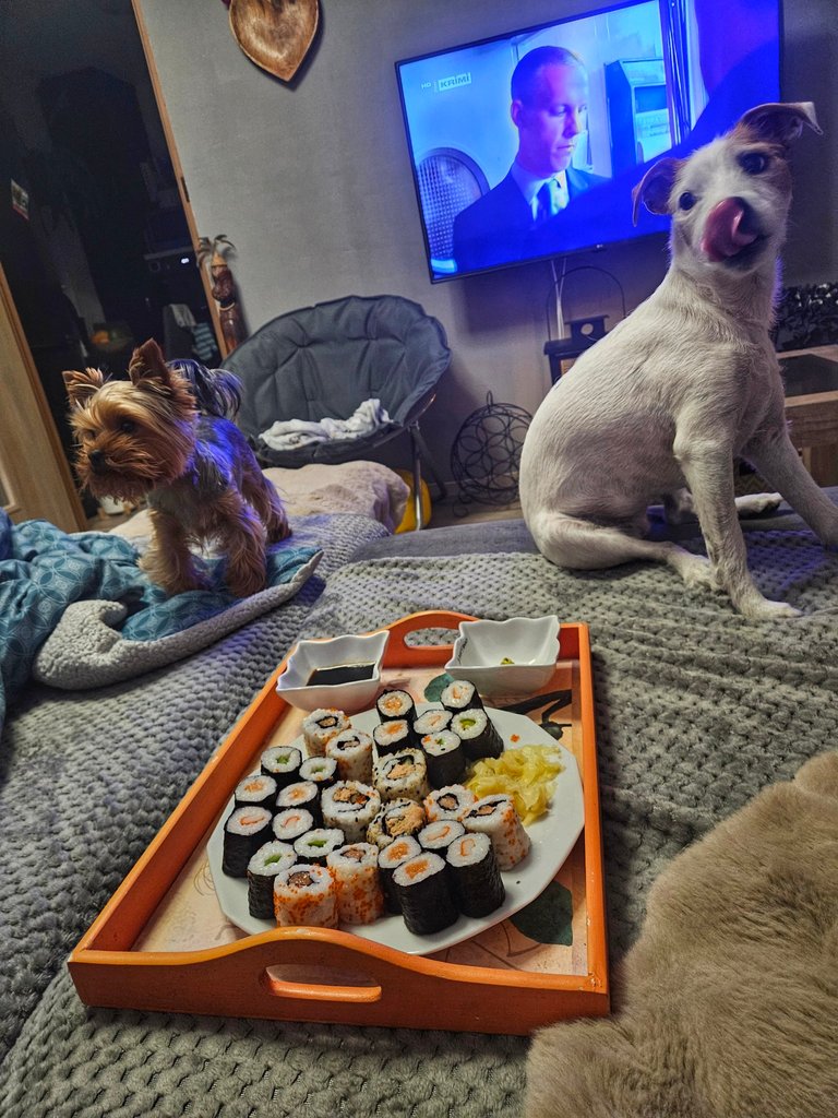 In the evening, we had sushi in front of the TV for the first time in a while. 🍣📺