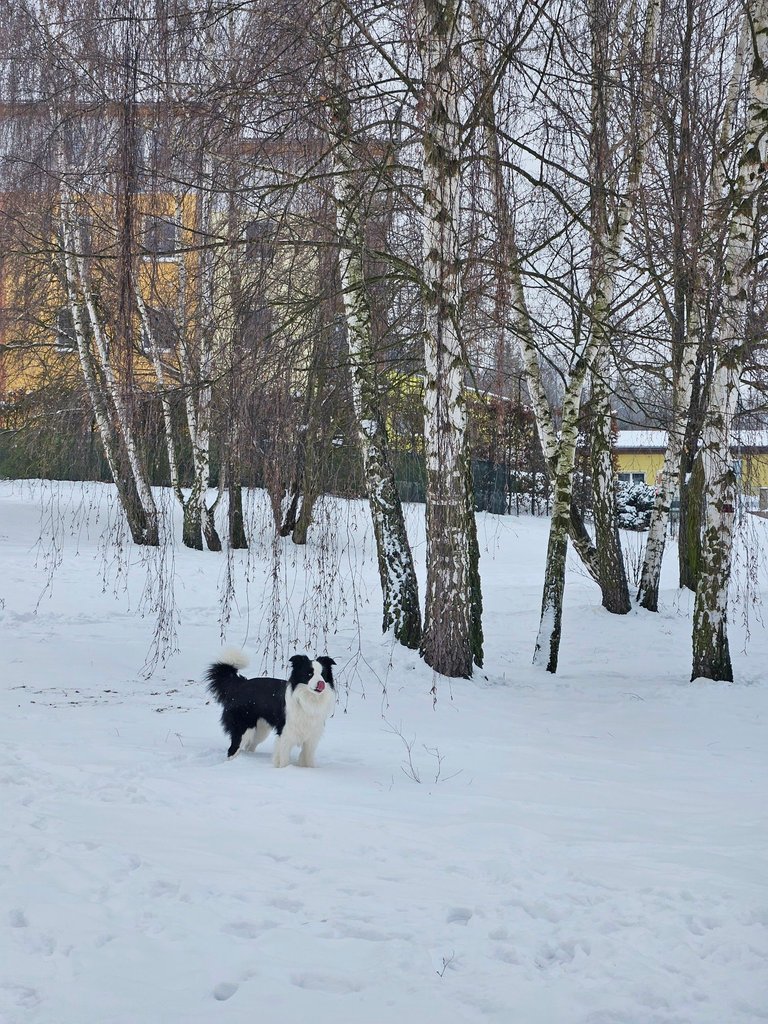 In the morning, I took my son's dog, Dante, for a walk, and in the afternoon, I went for a run through the snowy countryside.