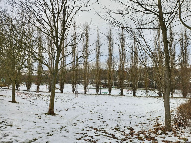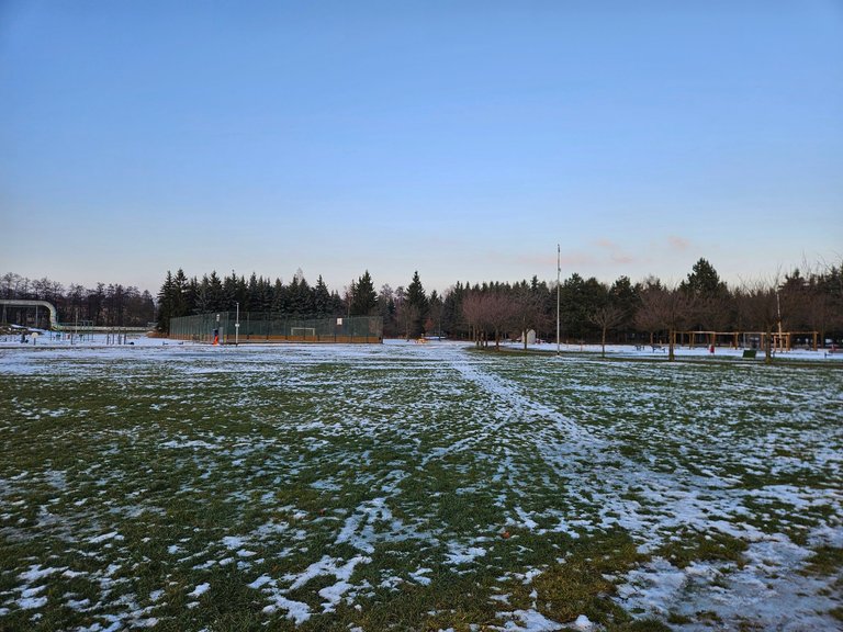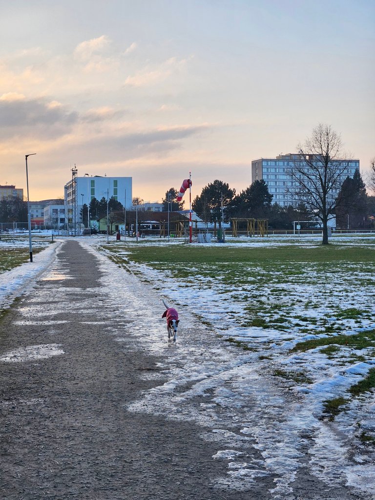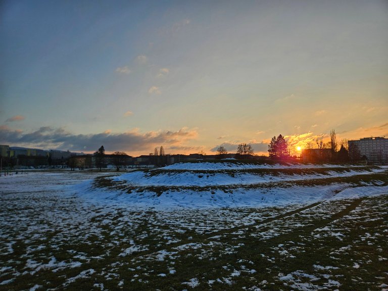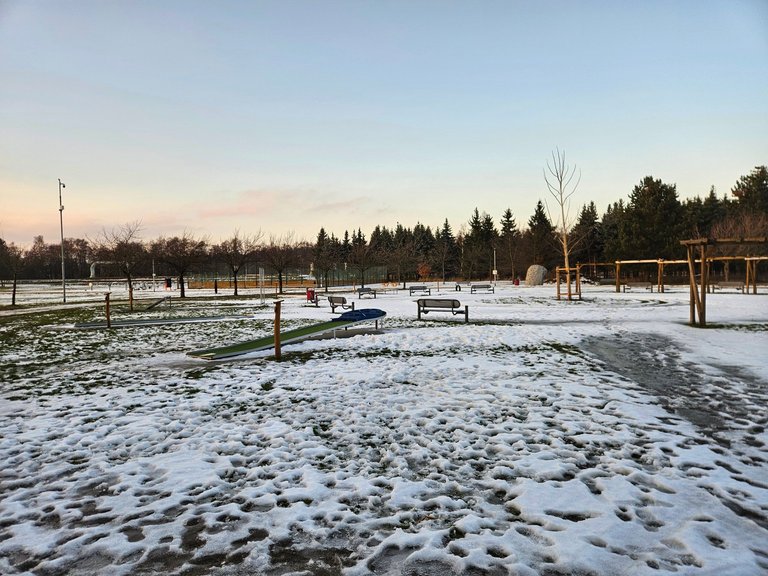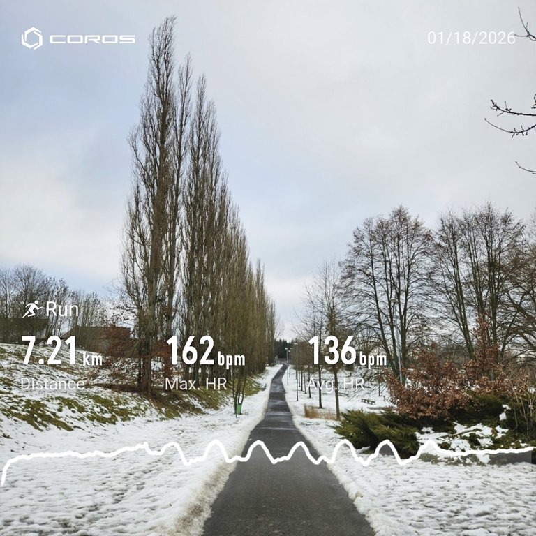 I ran again along the bike path and on the cleared surface of the Areál zdraví sports grounds.