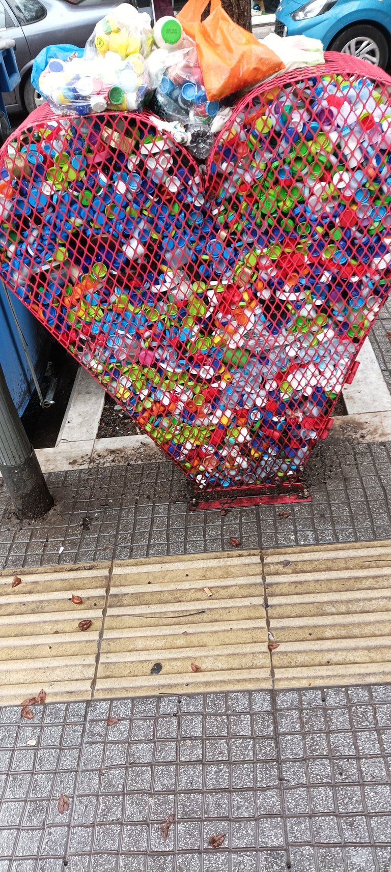 The message is clear: If you want to show that you love the planet and care about the environment, you can do so by disposing of your unwanted plastic caps into this heart-shaped recycling container.